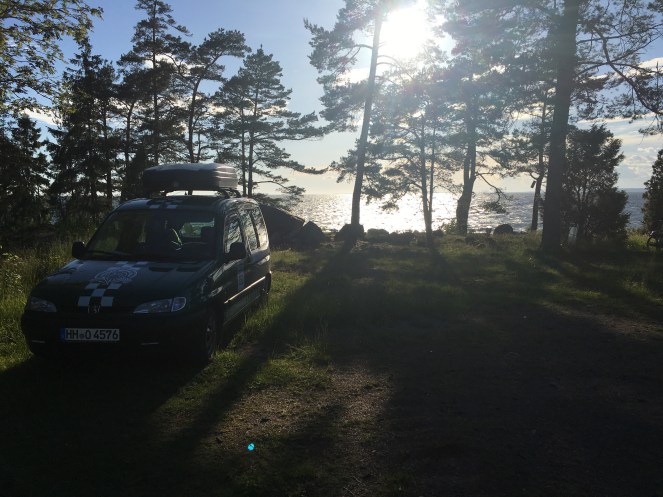 Heute nun war der erste komplette Rallyetag. 8:45 Uhr ging’s nach einem kurzen Besuch am Strand in Sandhammaren los. Es folgte eine laaange Fahrt abseits von Autobahnen durch Schweden, entlang von Seen, durch Wälder, hübsche Ortschaften und weites Land.