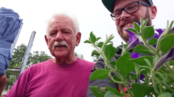 Sogar unsere Tauschaufgabe ist Robert heute gleich beim ersten Versuch gelungen. Aus dem blauen Schirm wurden drei blaue Topfpflanzen. Eben haben wir sie gegossen, damit sie morgen ganz frisch und knackig in Norwegen den Besitzer wechseln können.