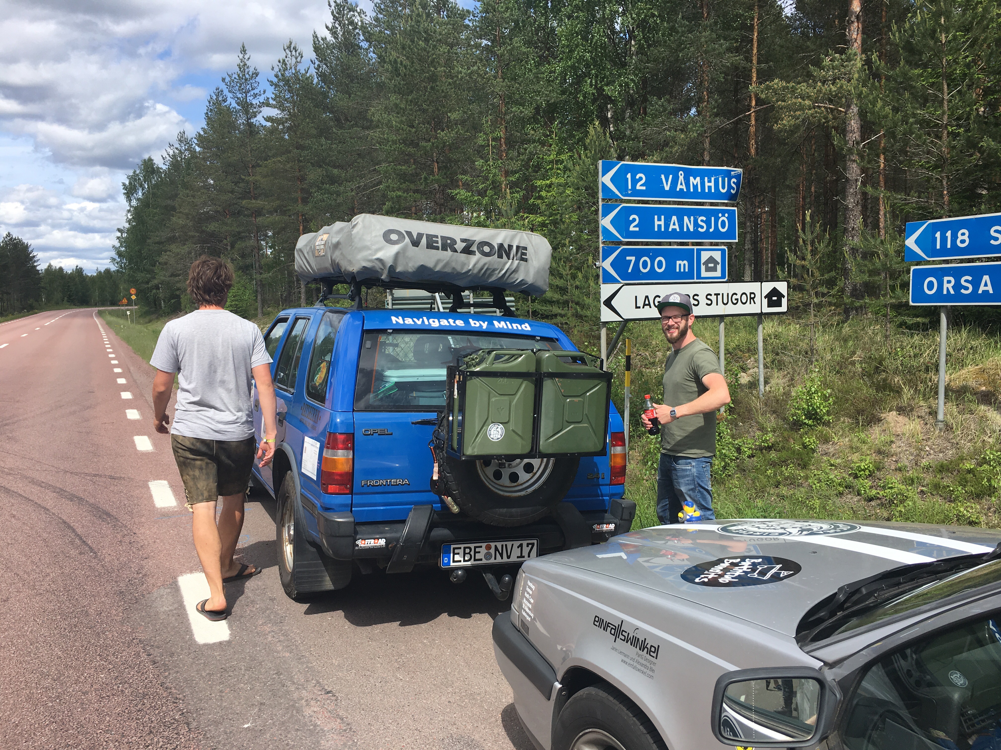 An diesem dritten Tag galt es, Kilometer zu machen. Es ging von Kristinehamn an Strömsund vorbei zum Nachtlager nach Järvsand. Im Konvoi mit drei anderen Teams kamen wir gut voran. Zudem war es heute ungemein sinnvoll, nicht allein zu fahren, denn unsere Tagesaufgabe war folgende: