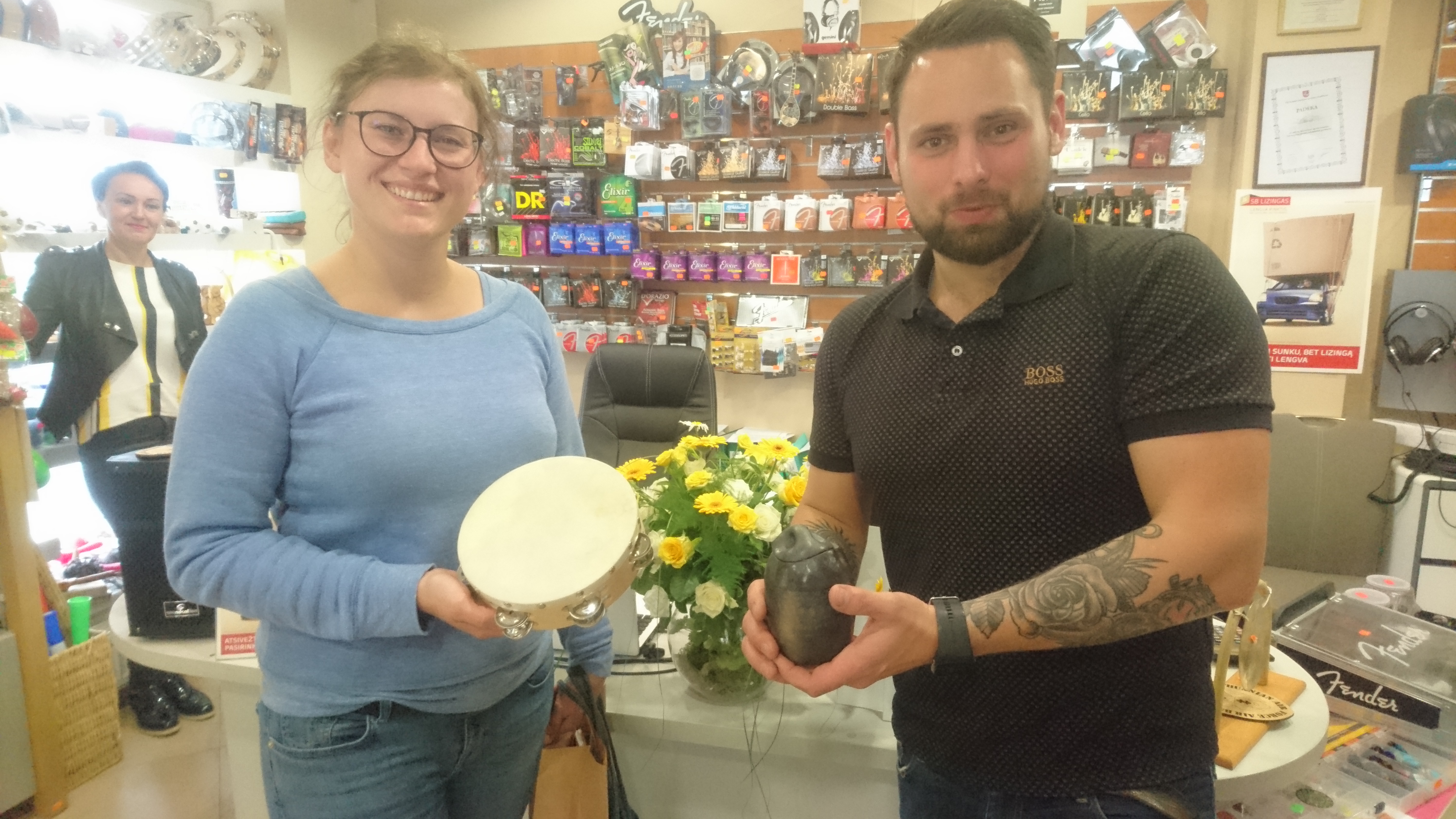 In Litauen mussten wir die Zuckerdose schon wieder abgeben und bekamen in einem kleinen Musikgeschäft ein Tambourin dafür.
