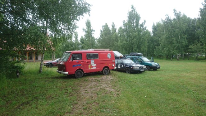 Berg der Kreuze.Danach ging es im Regen weiter über Landstraßen und durch holprige Baustellenabschnitte. Die Strecke zog sich in die Länge, was wir nicht erwartet hatten. Gegen zehn Uhr abends erreichten wir dann einen Campingplatz an einem See nahe des polnischen Örtchens Wegorzewo. Dort trafen wir die bekannten Teams wieder und schlugen unser Nachtlager auf. Zum Glück hatte es aufgehört zu regnen, sodass wir unsere Campingausrüstung noch einmal zum Einsatz bringen konnten. Es gab Suppe aus der Dose und Marshmallows vom Grill.